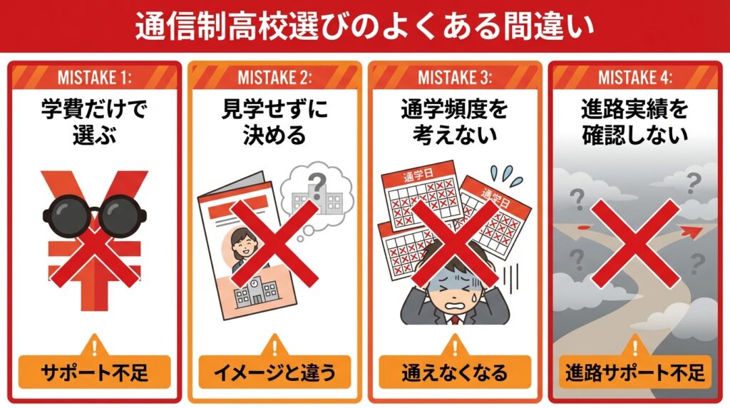 通信制高校選びでよくある失敗例と、その対策を紹介します。