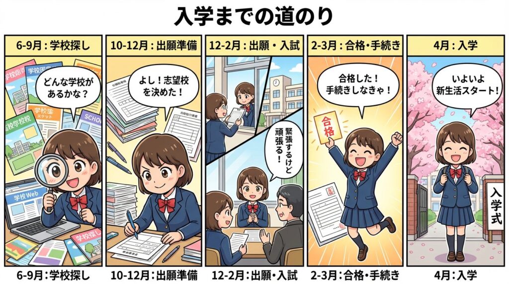 通信制高校への入学手続きの全体の流れを、スケジュール形式で解説します。