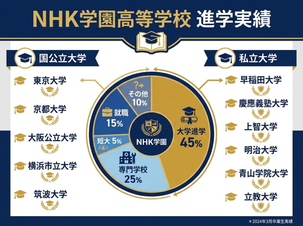 はい、可能です。NHK学園高等学校からは、東京大学や京都大学、早稲田大学、慶應義塾大学などの難関大学への合格実績もあります。受験対策講座や個別指導など、大学受験のサポート体制も整っています。