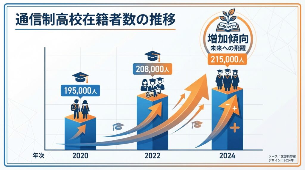 通信制高校を選ぶ生徒は年々増加傾向にあり、もはや「特別な選択」ではなく「普通の進路選択の一つ」となっています。