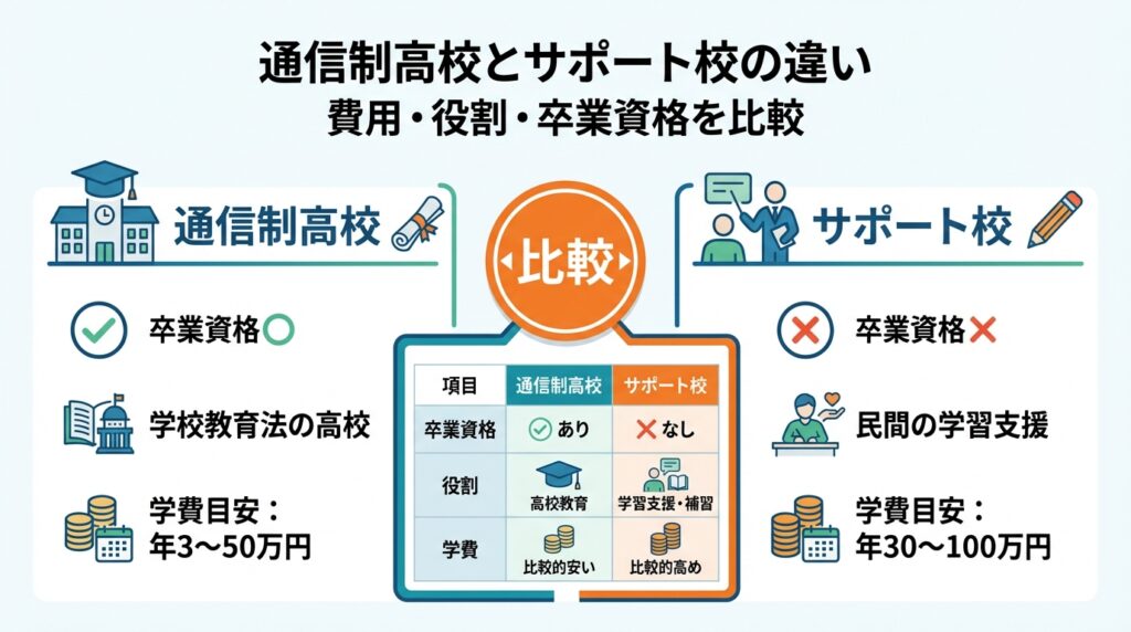 通信制高校とサポート校の違いは?併用すべき?費用とメリットを比較