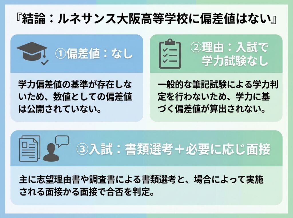 ルネサンス大阪高等学校には、学校の偏差値は存在しません。