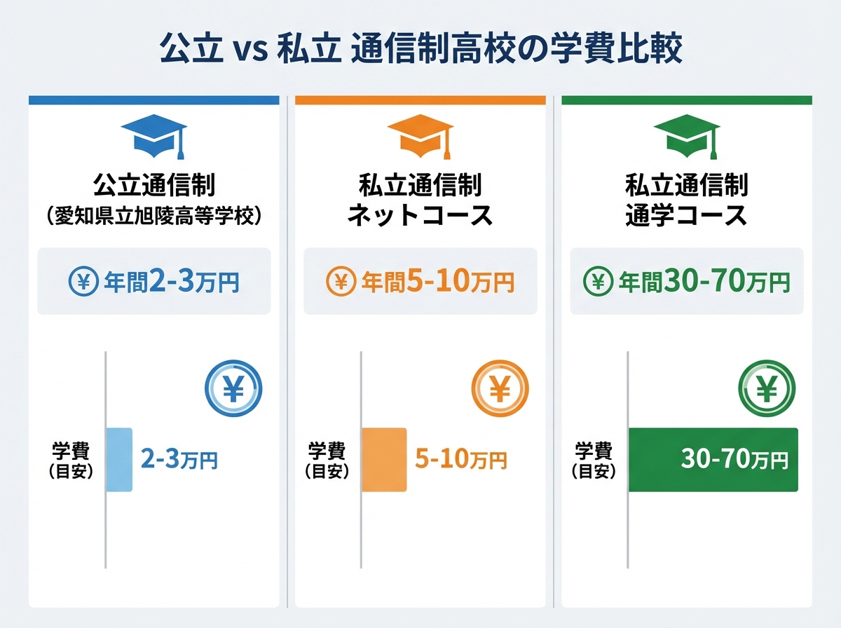 - 公立通信制: 年間2〜3万円程度(教科書代・諸費用のみ)