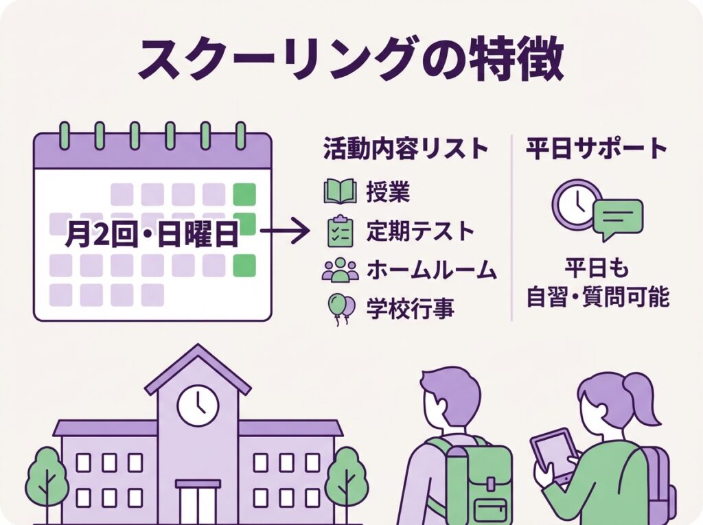 三重県立松阪高等学校の通信制では、月に2回程度、日曜日にスクーリングへの参加が必要です。