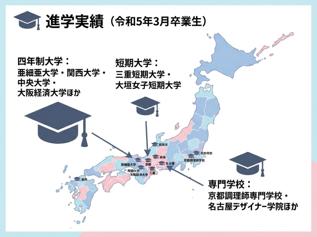 三重県立松阪高等学校の通信制課程からも、毎年多くの卒業生が四年制大学や短期大学、専門学校へ進学しています。