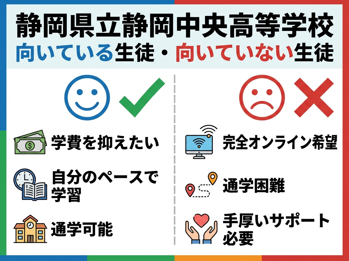静岡県立静岡中央高等学校(通信制)が向いている生徒・向いていない生徒