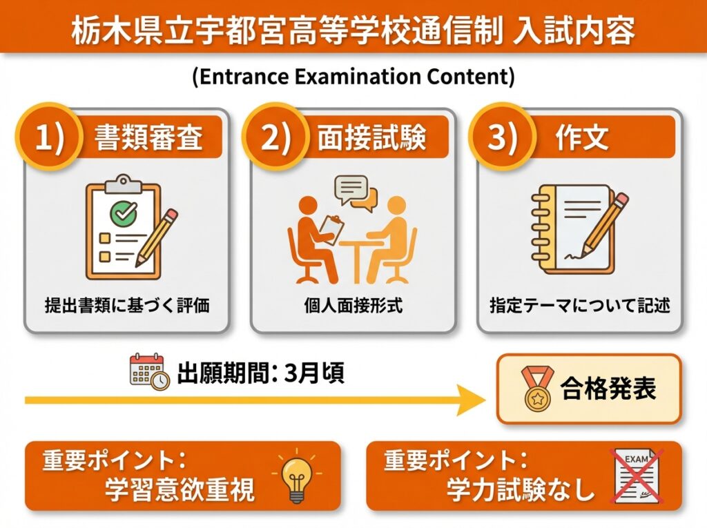 栃木県立宇都宮高等学校の通信制課程における入試内容は、通常の全日制高校とは異なる特徴を持っています。2026年度入試に向けて、しっかりと準備を進めましょう。