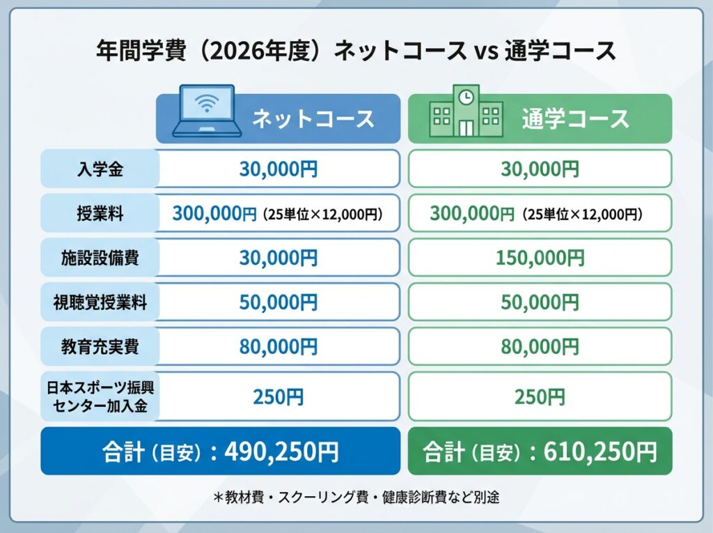 ネットコース(オンライン進学コース・メタバースコース含む)の基本的にかかる年間学費は以下の通りです。