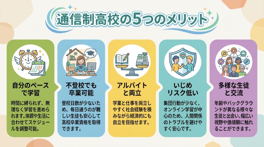 通信制高校を選ぶ主なメリットは以下の通りです。