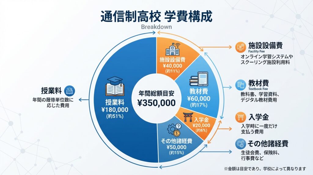 私立通信制高校の基本的な学費内訳は以下の通りです。